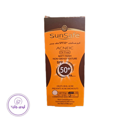 کرم ضد آفتاب SPF50 فاقد چربی بژ طبیعی سان سیف مناسب پوست های چرب و آکنه ای ۵۰ میلی لیتر