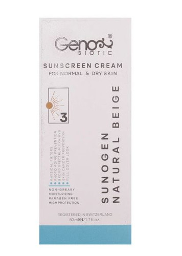 کرم ضد آفتاب رنگی ژنوبایوتیک SPF50 مدل 03 مناسب پوست های خشک و معمولی Natural beigeحجم 50 میلی لیتر