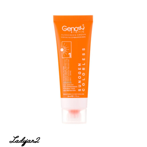 کرم ضد آفتاب بدون رنگ ژنوبایوتیک مدل01 SPF 50 مناسب پوست های خشک و معمولی حجم 50 میلیلیتر