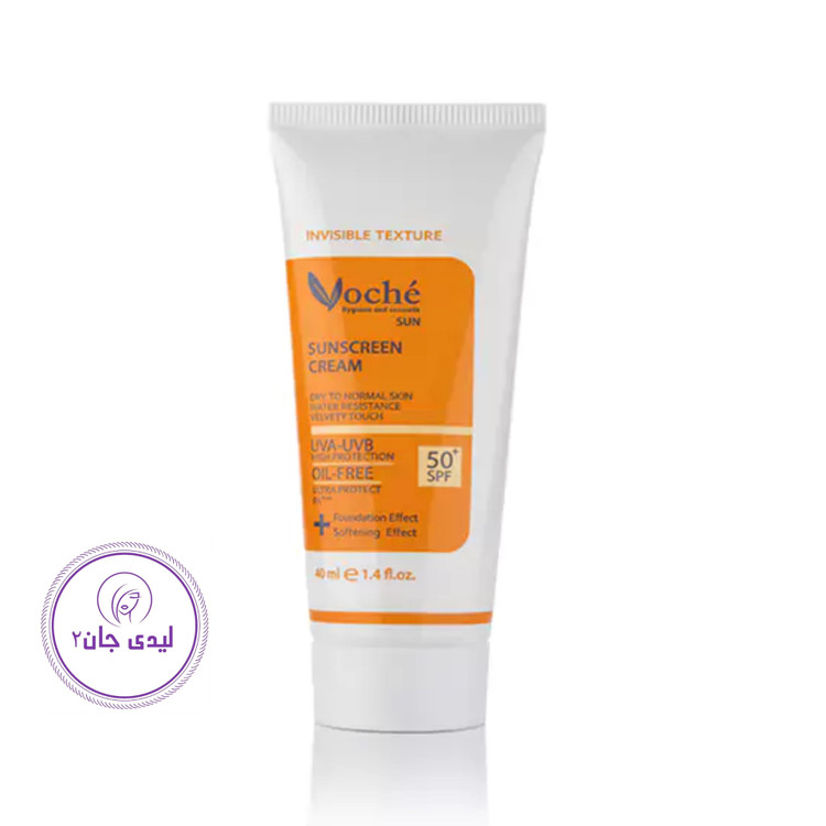کرم ضد آفتاب بی رنگ وچه ,voche , مناسب پوست های خشک و معمولی SPF+50
