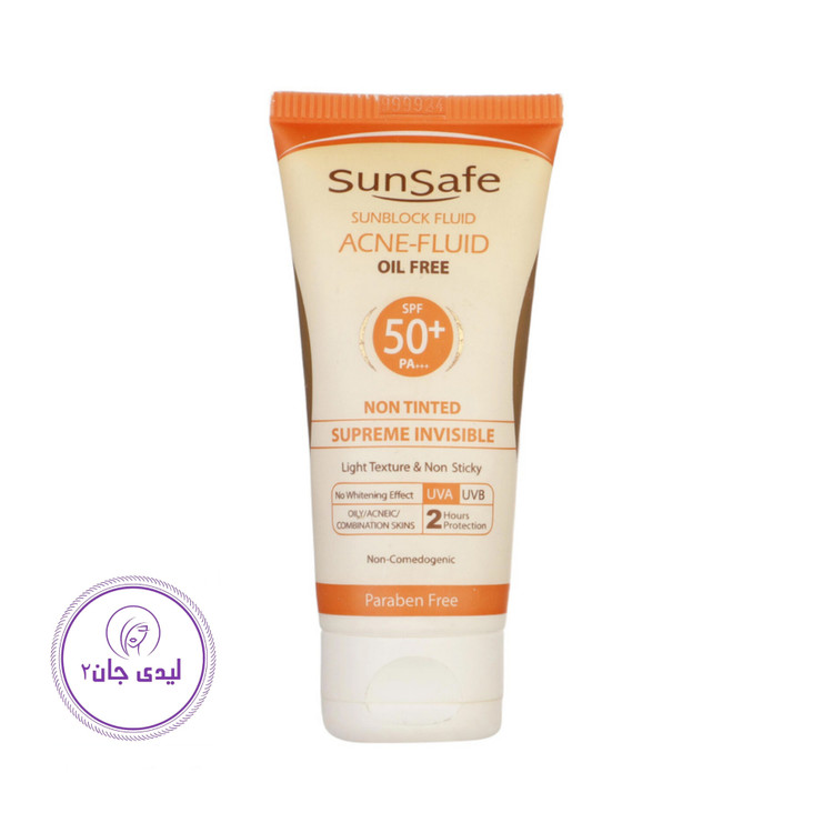 کرم ضد آفتاب بی رنگ سان سیف spf50 مدل ACNE-FLUID مناسب پوست مختلط حجم 50 میلی لیتر محافظت ۲