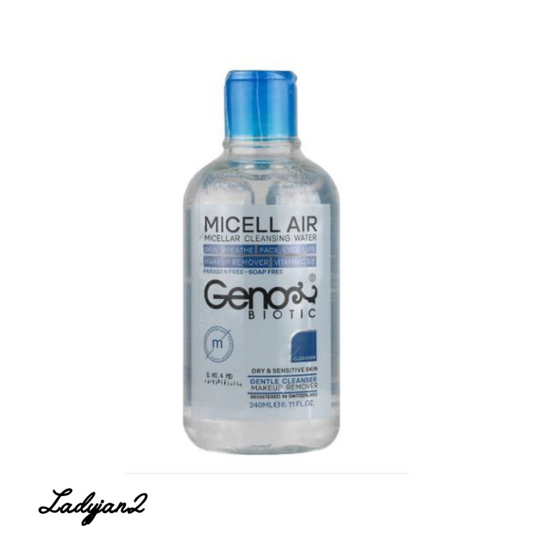 - میسلار واتر ژنوبایوتیک پوست خشک، فاقد مواد صابونی، پارابن، روغن و الکل
