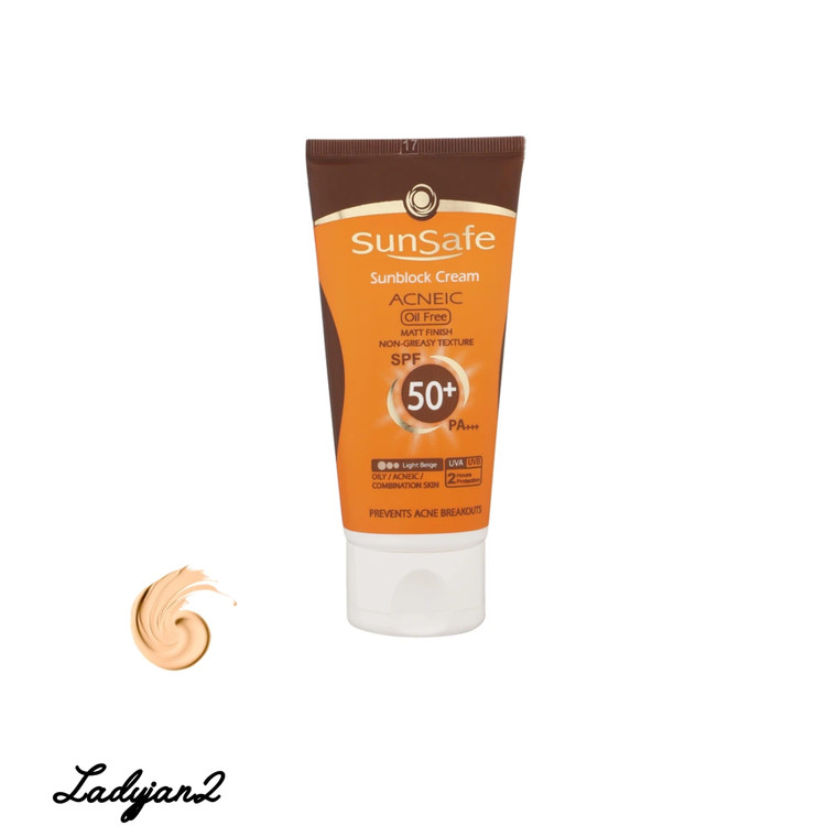 کرم ضد آفتاب SPF50 فاقد چربی بژ طبیعی سان سیف مناسب پوست های چرب و آکنه ای ۵۰ میلی لیتر